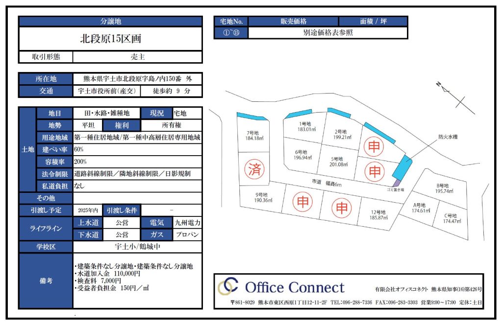 土地/分譲地【宇土市北段原 15区画】お好きなメーカーで建築可能です!
